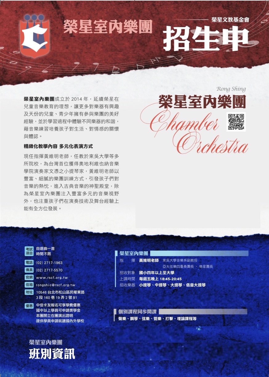 榮星室內樂團2018秋季招生中!!!